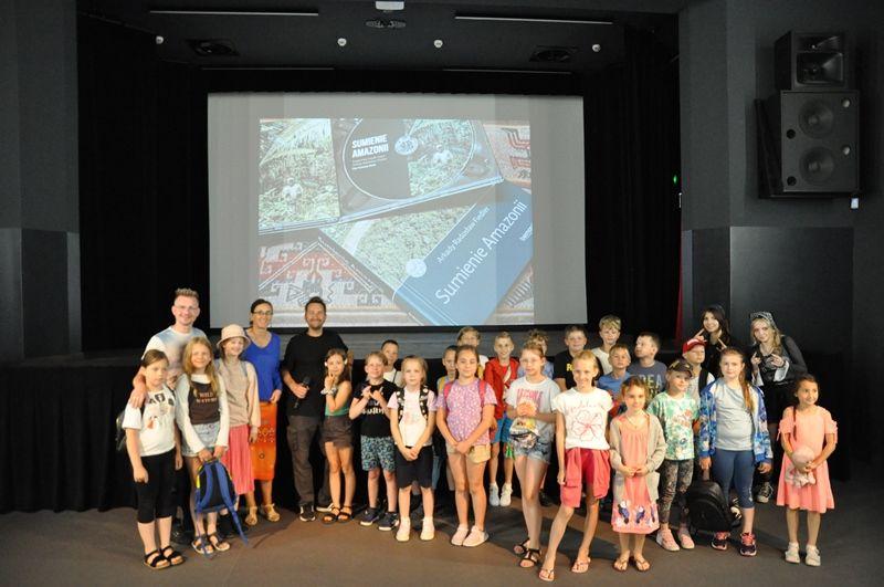 Podczas pierwszego dnia zajęć wakacyjnych w MCK-u obejrzeliśmy w Kinie Nawojka piękną, mądrą i ciekawą animację „Ainbo. Strażniczka Amazonii”. Po filmie raz jeszcze przenieśliśmy się w wyobraźni do cudownego świta puszczy amazońskiej dzięki spotkaniu z podróżnikiem i fotografem Tomaszem Siudą, który przyjechał do nas z żoną i córeczką. Pan Tomasz pokazał nam fascynujące zdjęcia z podróży i barwnie opowiedział o przygodach, przyrodzie oraz miejscowej ludności. Poznaliśmy kajmany, piranie, śmiercionośne mrówki, jadowite węże żararaki, „słodkie” małpki kapucynki i okropne larwy komarów. Podziwialiśmy maczetę, pióra papugi oraz łuski ogromnej ryby. Sercem jesteśmy z amazońską dżunglą, która kurczy się przez ludzką chciwość, a nazywana jest „zielonymi płucami świata” i potrzebuje ocalenia. Laureatowi nagrody im. Tony Halika dziękujemy za to inspirujące spotkanie i życzymy powodzenia podczas kolejnych przygód podróżniczo-fotograficznych!